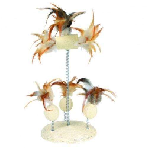 Dieses Katzenspielzeug besteht aus Luffa-Elementen mit Federn, die auf Spiralfedern sitzen und dadurch natürlich bei jeder Berührung lustig wackeln. Der Standfuß des Spielzeugs ist mit Sisal bezogen.<...